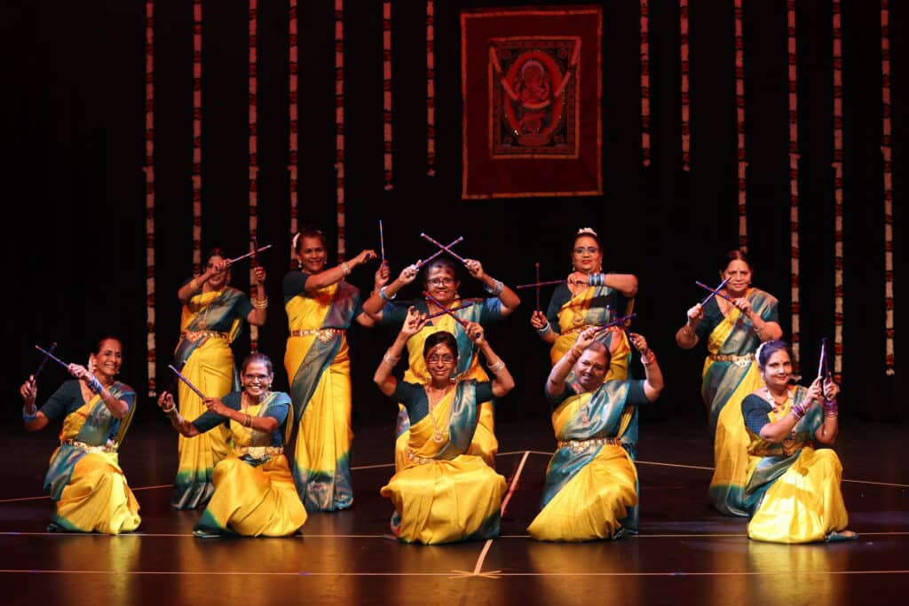 Another presentation which received a great ovation from the audience is the Kolattam / dandiya dance by a group of ladies trained within a month, mostly above sixty years with minimal dancing experience. Smt Padmalakshmi wanted to provide the pleasure and joy of dancing to those who did not have an opportunity to do so and also convey the message that age is no barrier to learn anything.