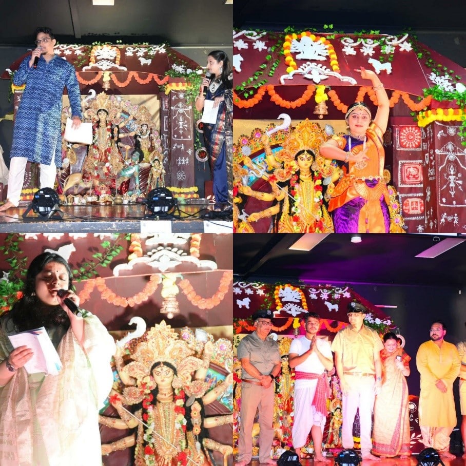 Traditionally, Dashami marks the end of the puja rituals. However, the age-old tradition of giving a farewell to “Maa Durga” by women draped in beautiful traditional sarees was followed at the Oikotan pujo as well where the members bid their beloved daughter a final send off for this year often with tears in their eyes following that up with applying red vermillion on each other’s face which is yet another age-old tradition. While sadness creeped in, celebrations were still on as participants and team members from age groups soon broke into the traditional dance form to the tunes of a very traditional drumbeats, “Dhak er awaj”.