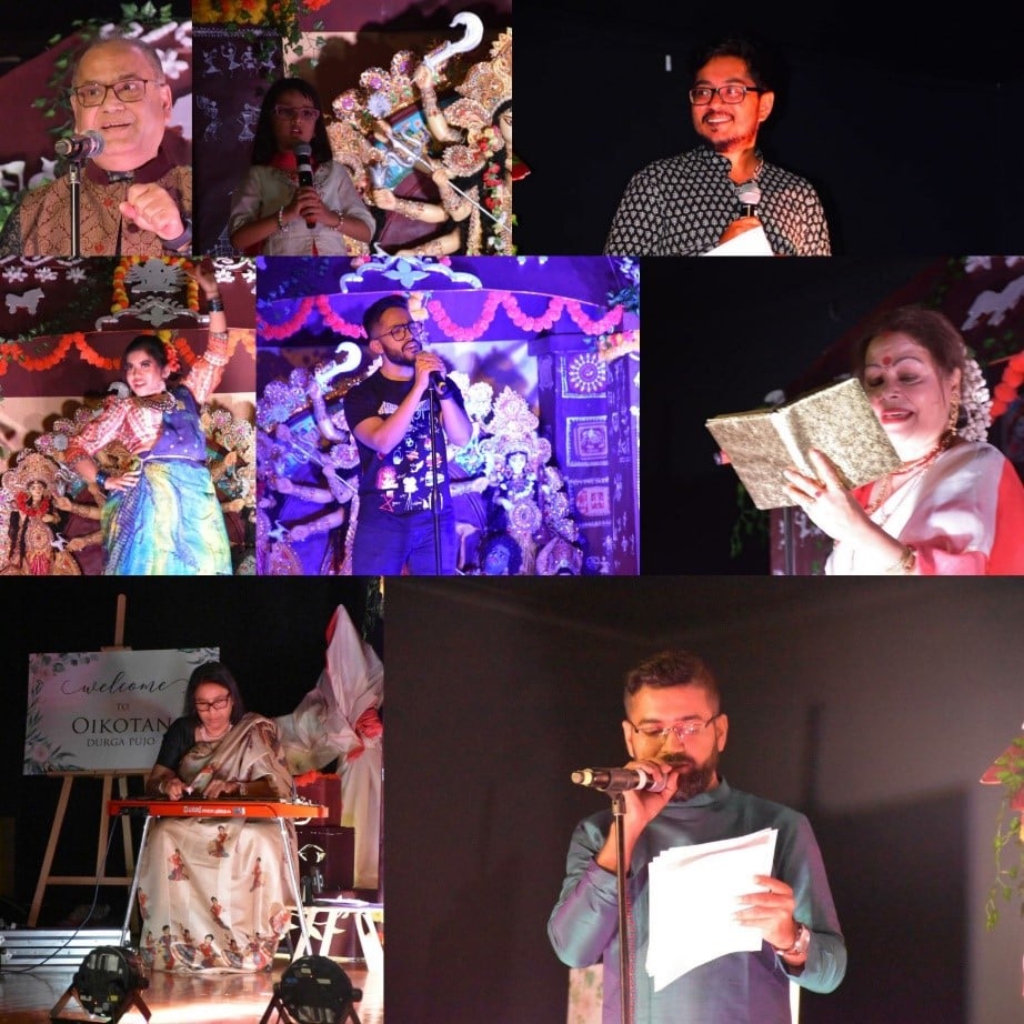 Yet another first for this year and following the tradition back home in Kolkata, team Oikotan organized cultural program on both the days. New and old members showcased their creative sides ranging from dance, recitation to singing and drama. Some of the core team members made their debut in a drama which was a highlight of the day alongside a brilliant Bharatnatyam dance performance by one of the participants. Day 2 performances were equally matched by audio drama, recitation by one of the youngest members along with a tribute to the legendary KK with the proceedings being concluded by a fashion show where more than 20 members showed off heir traditional attire to the loud and cheering crowd. A sumptuous meal soon followed thereby signalling an end to Oikotan Durga Pujo 2022.